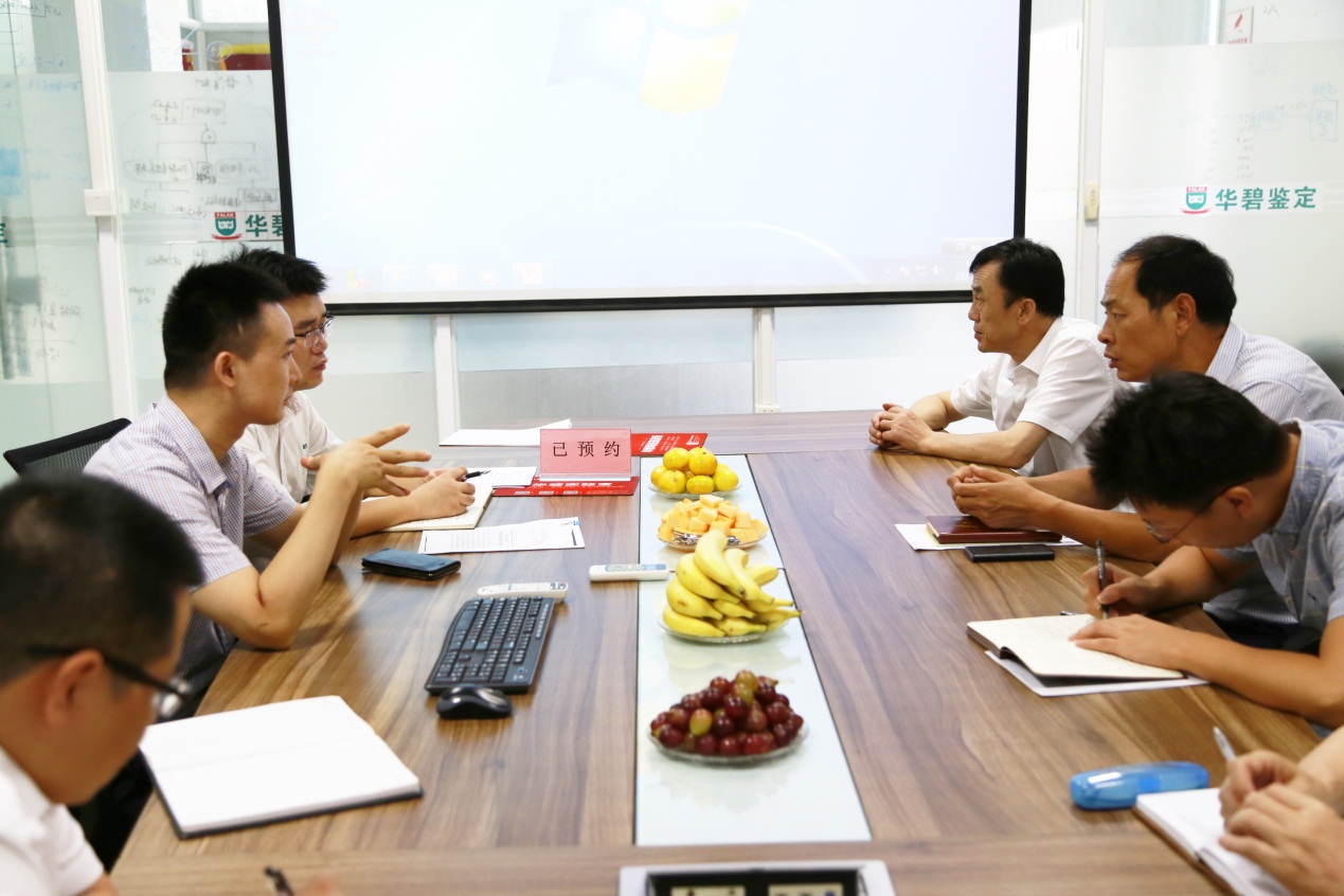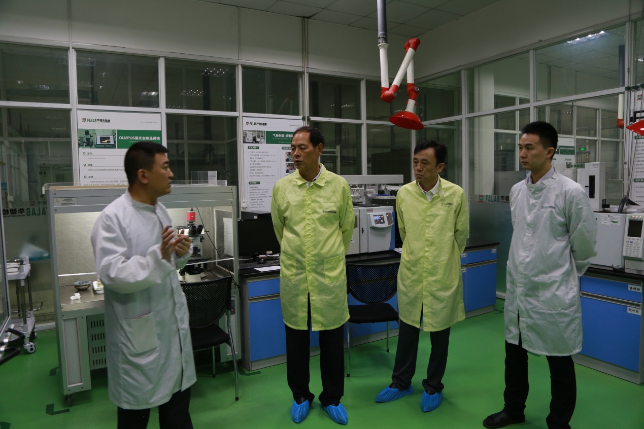 On August 23, 2017, Comrade Yang Junwei, Deputy Director of Suzhou Judicial Bureau, and Xie Hai, Director of Judicial Appraisal Administration, went to Huabi Judicial Appraisal Institute for investigation. Liu Xuesen, President of Huabi Group, warmly welcomed Comrade Yang Junwei and his delegation from Suzhou Judicial Bureau and accompanied them to visit the major safety accident analysis and investigation department, mechanical equipment analysis laboratory, electronic material failure analysis laboratory, material failure analysis laboratory and motor vehicle technology analysis laboratory of Huabi Institute. In the laboratory, Comrade Yang Junwei had a detailed understanding of Huabi Institute's work, technical ability, and self-discipline in the industry, and had a discussion on judicial expertise fees.