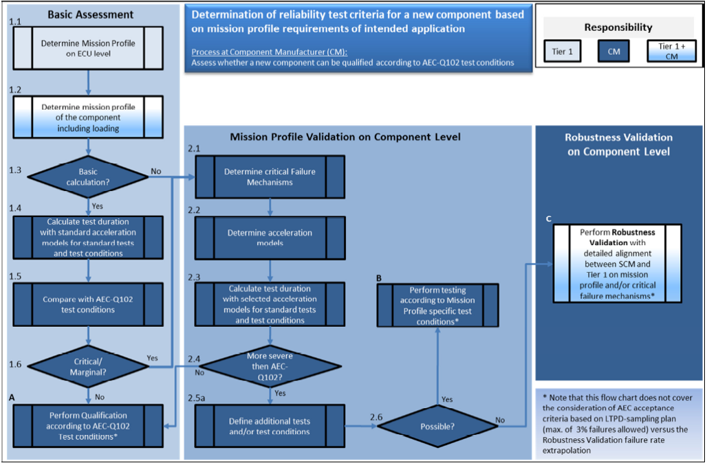 AEC Q102目前適用的版本是2020年的A版,在原有測(cè)試項(xiàng)目的基礎(chǔ)上稍微有些調(diào)整,如WHTOL1、WHTOL2,不再要求Tsolder焊點(diǎn)溫度的管控(實(shí)踐中比較困難),而是以Tambient溫度為試驗(yàn)基準(zhǔn);增加了Board Flex板彎曲測(cè)試,補(bǔ)充了SMD器件結(jié)構(gòu)強(qiáng)度的試驗(yàn)要求.在AEC Q102標(biāo)準(zhǔn)中,基本原則是根據(jù)器件類型、封裝形貌等特征,執(zhí)行并通過必要的測(cè)試項(xiàng)目,可參考如下: